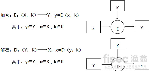 对称加密/解密技术是加密与解密都用同一个密钥的加密/解密技术。基本模型如下图所示。明文X经密钥K经过加密算法E成为密文Y。同理,密文Y经密钥K经过解密算法D成为明文X。